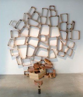 While all the projects are worth a mention for their creativity, three really stand out: the oddstock floored wardrobe is quite lovely with its zigzagged-pattern doors made from clearance flooring; the split box shelves (see image below), which marries art and functionality by assembling logs and strips of plywood into an array of boxes; and the simply perfect writing desk, inspired by furniture of the 1950s and 1960s but suitable for any corner in need of a table, especially in a child’s room.
